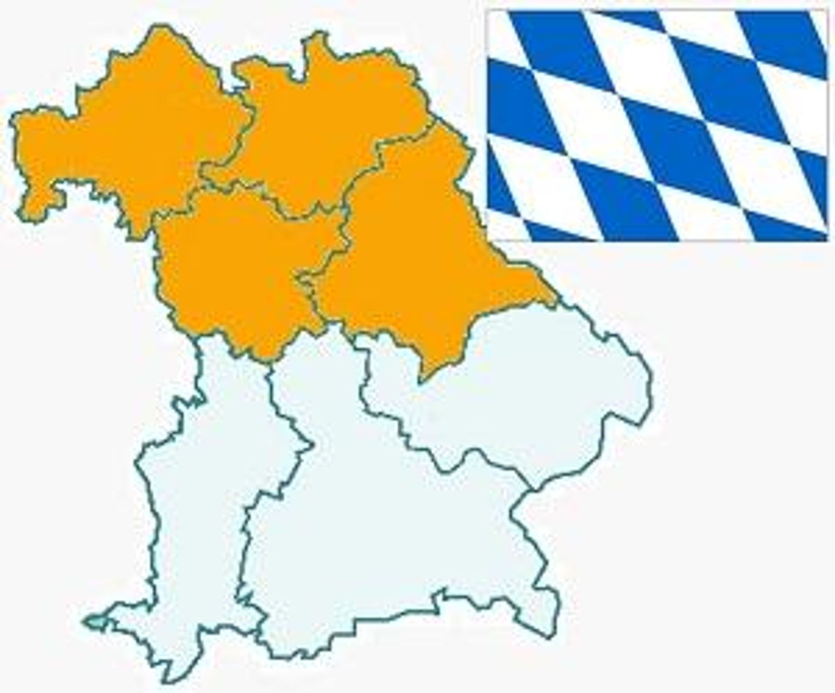 Der Norden von Bayern ist auf dem Bild in der gelben Farbe.