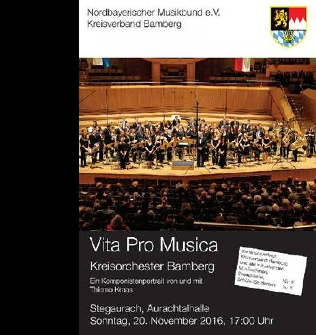 20. November - Aurachtalhalle Stegaurach Komponistenportrait „ Vita Pro Musica“ - am Pult Thiemo Kraas Mitwirkende: Kreisorchester Bamberg |