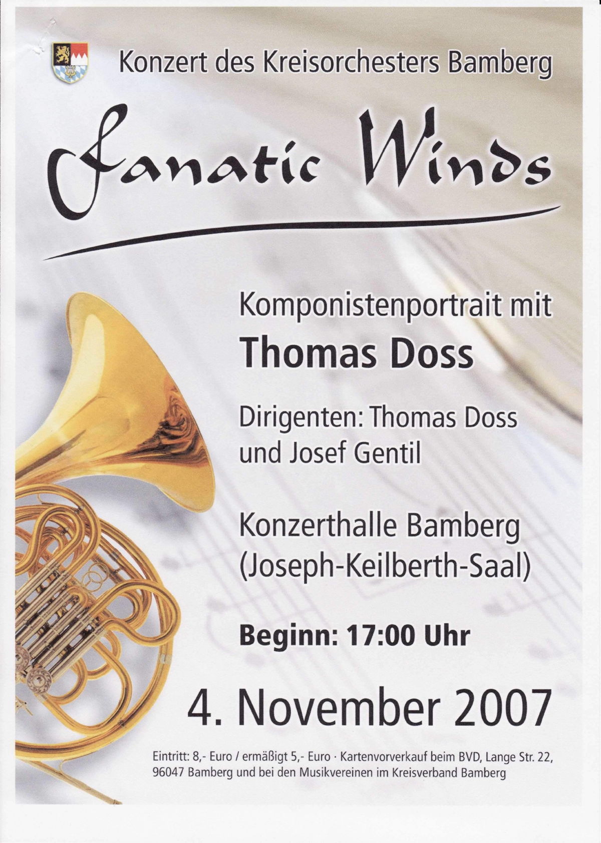 04. November - Konzerthalle Bamberg Komponistenportrait „Fanatic Winds“ - am Pult Thomas Doss |