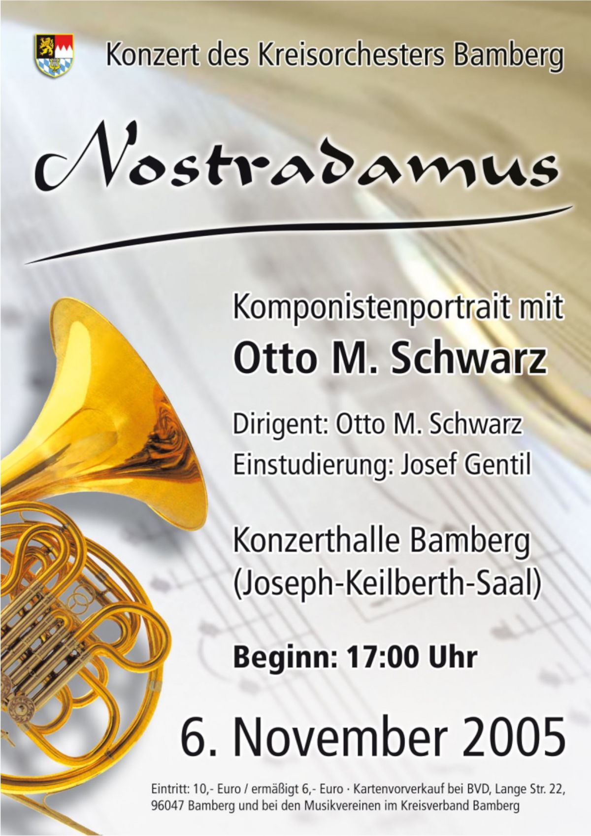 06. November - Konzerthalle Bamberg Komponistenportrait „Nostradamus“ - am Pult Otto M. Schwarz |